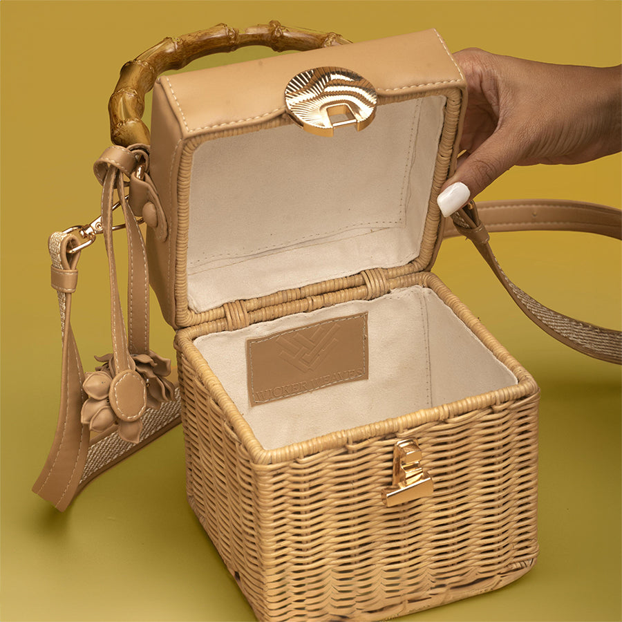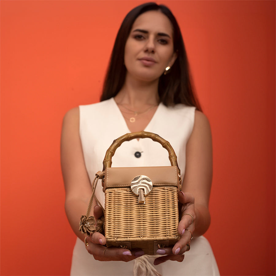To be cleaned with a soft damp cloth and stored in a dust free bag provided along with the bag. Store it well due to the delicate nature of the bag.