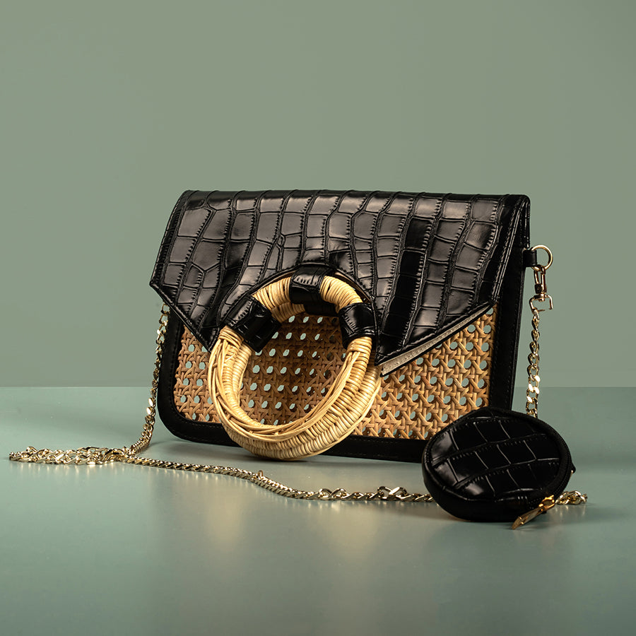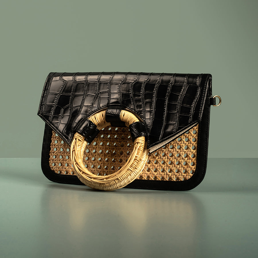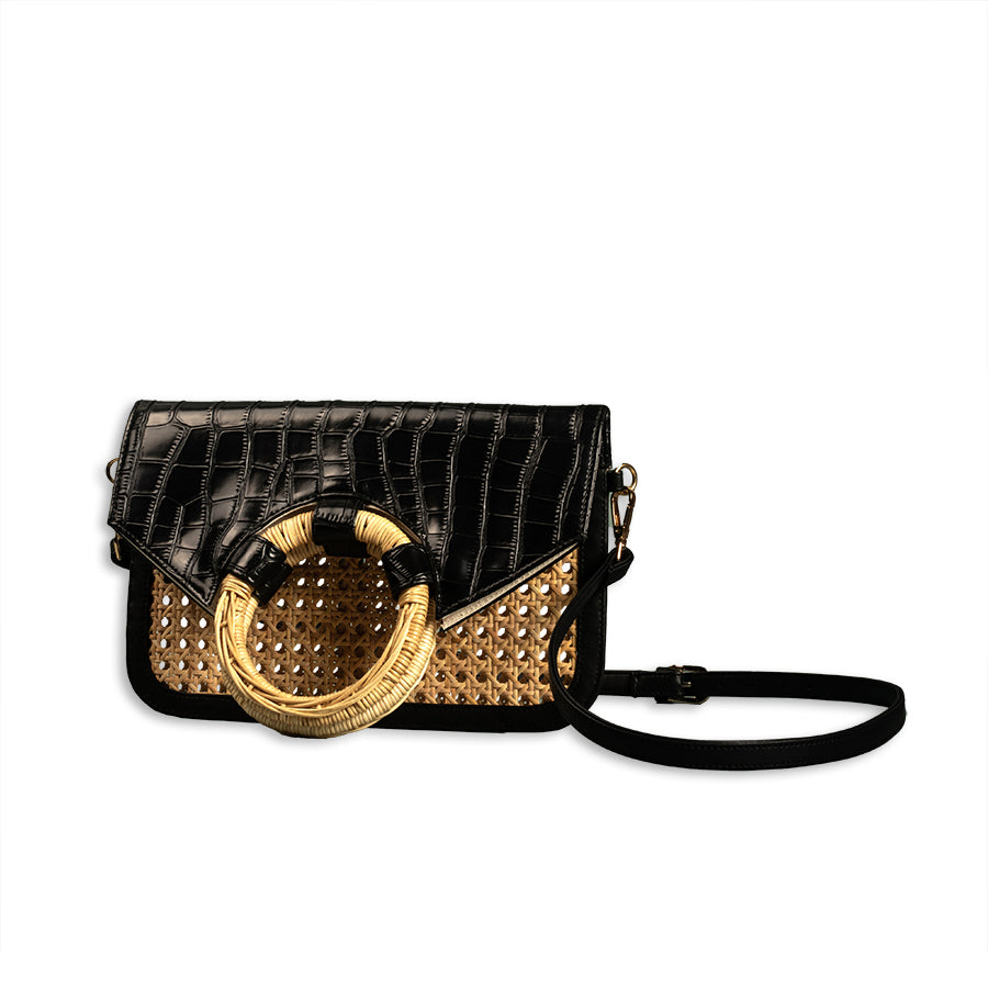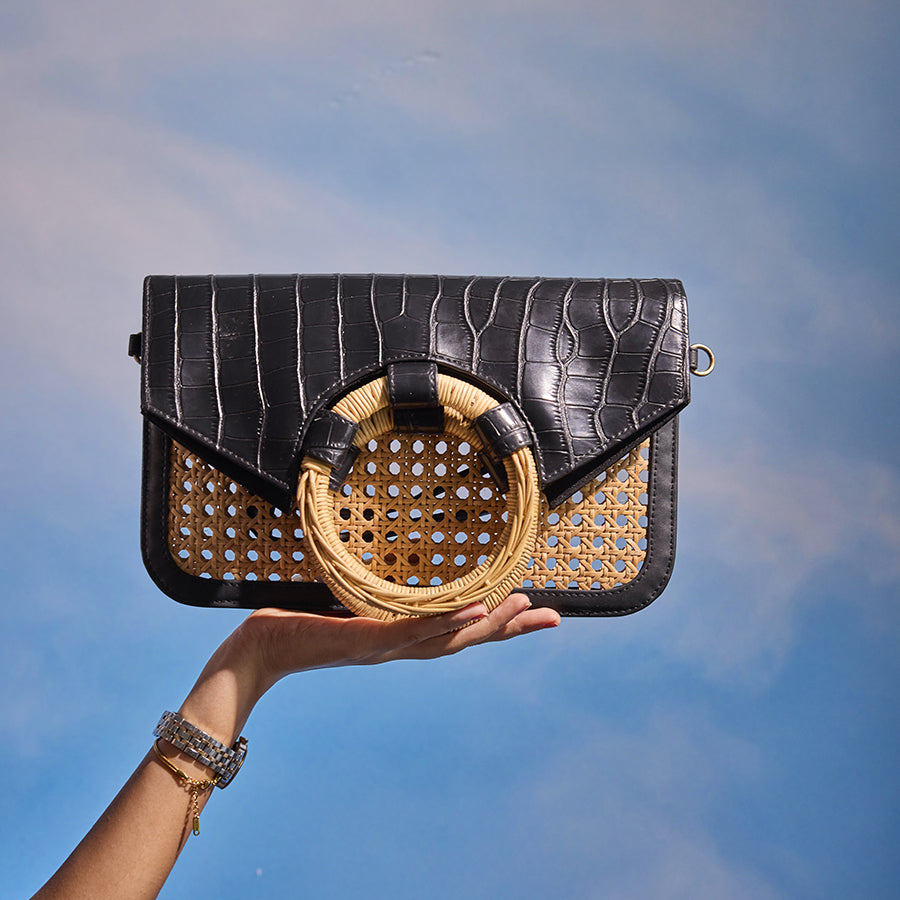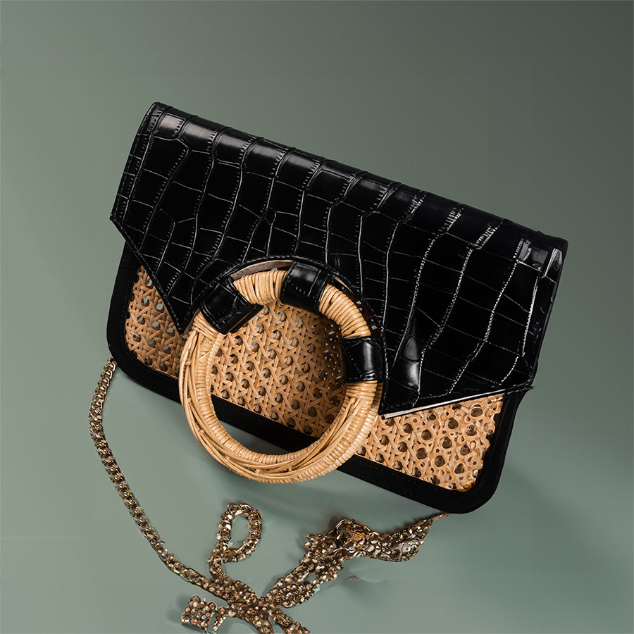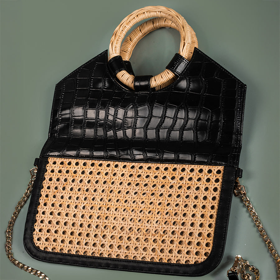 • Faux leather and cane webbing body